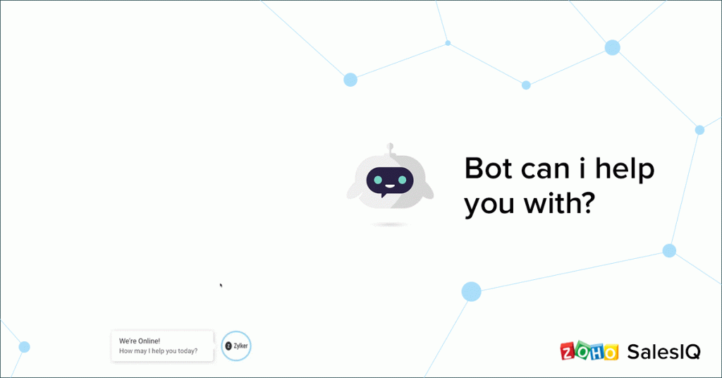 Chloe puede responder preguntas simples de los clientes con respecto a ventas y soporte. Las tareas repetitivas, como responder preguntas comunes de nuevos clientes, soporte de bajo valor y consultas de ventas, pueden automatizarse por completo, garantizando la resolución oportuna de las solicitudes de soporte. Esto también significa que los agentes tienen más tiempo para lidiar con casos importantes. Si los agentes están en línea, los clientes siempre pueden elegir conectarse con ellos en cualquier momento de su conversación con Chloe. Si los agentes están fuera de línea, los clientes pueden dejar un mensaje después de hablar con Chloe.